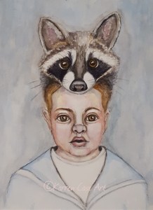 I started this watercolor series many moons ago in a galaxy far, far away. No I didn’t. It was right here in my art room in my home in North Texas. At the time, I had discovered a wonderful artist by the name of Kate Thompson and her fabulous, hauntingly beautiful, Children of the Wild which is a series of children with an animal in their natural environment depicted on their heads. Now by no means are my Critter Kids hauntingly beautiful. They are ok and more on the sweet side. At least I think so.